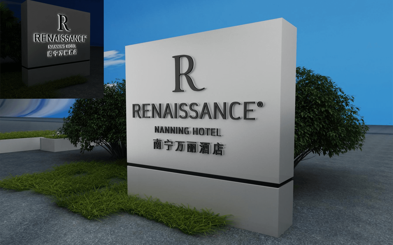 南寧萬麗酒店樓體標識設計、門頭設計、制作生產