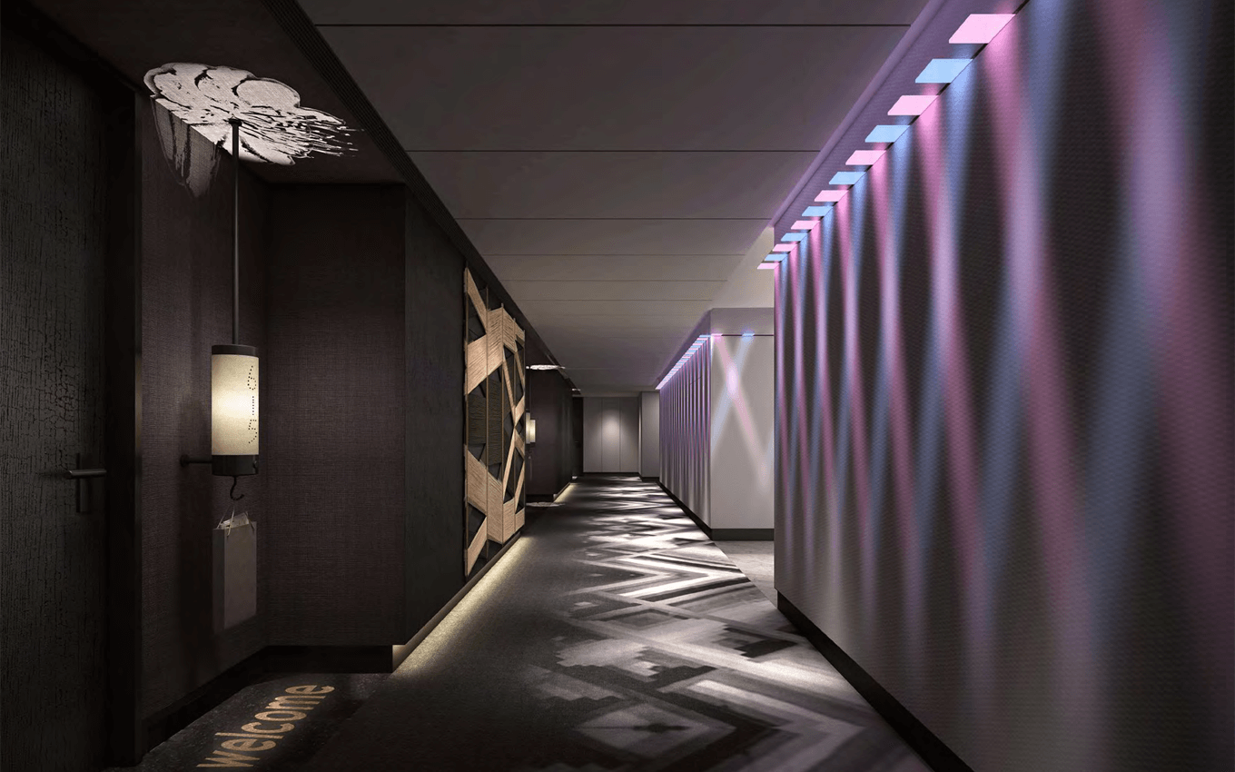 南寧萬麗酒店門牌設計、投射燈光門牌設計、指引牌設計、酒店燈光設計